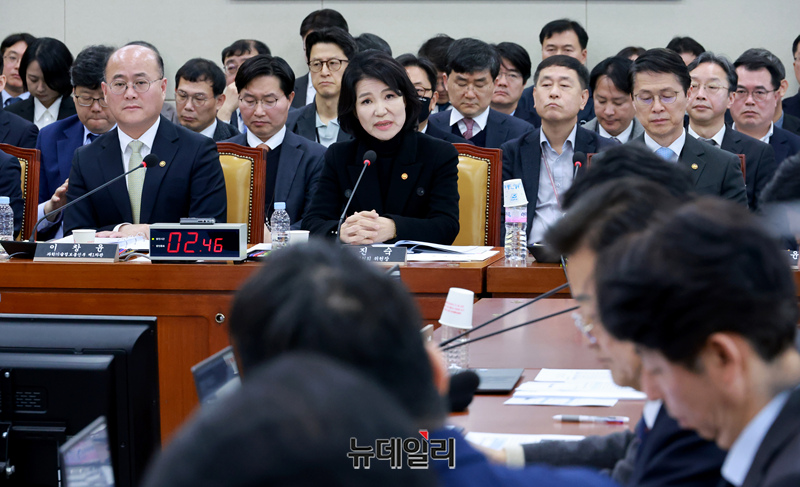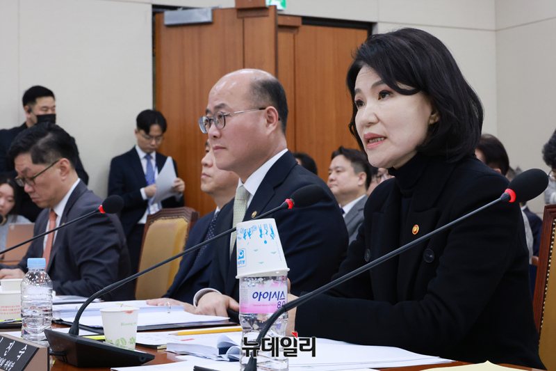 이진숙 방송통신위원장이 5일 오전 국회 과학기술정보방송통신위원회 전체회의에 출석해 의원들의 질문에 답하고 있다.