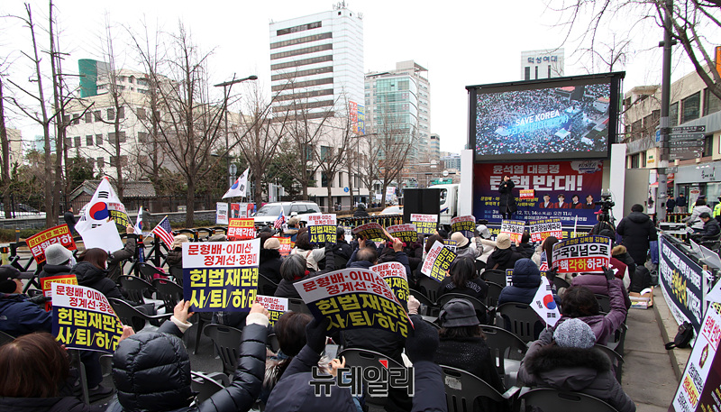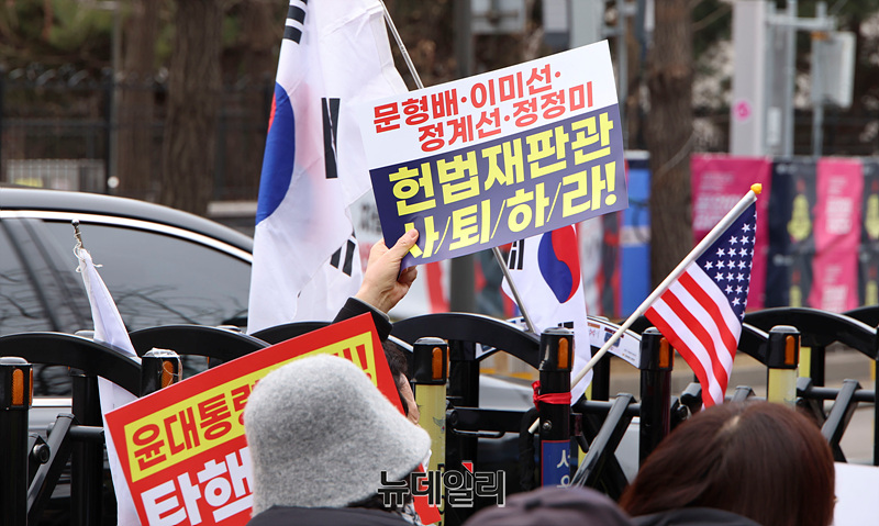 [포토] 헌재 인근서 울려퍼지는 '윤석열 대통령 탄핵 반대'