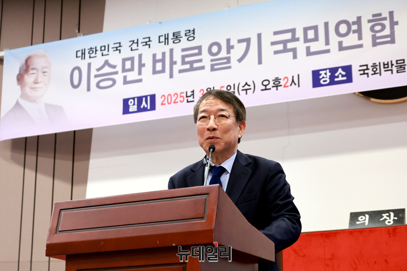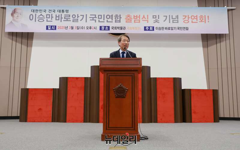 이승만바로알기국민연합(대표 변정일) 출범식 및 기념 강연이 5일 오후 국회 박물관에서 열린 가운데 정운찬 전 국무총리가 축사를 하고 있다.이날 행사는 이승만동상광화문건립추진위원회와자유헌정포럼, 한반도미래재단, 한반도인권과통일을위한변호사 모임 등 20여 개 단체가 참여 했다.기념 강연회에서는 이영훈 이승만 학당 교장이 '제헌헌법 전문에 새겨진 대한민국 건국의 정통성', 류석춘 전 연세대 교수가 '이승만은 과연 친일인가?', 인보길 뉴데일리 미디어그룹 회장이 '이승만은 독재자인가?', 정안기 박사가 '이승만은 남북문단 책임자인가?' 등의 주제 발표를 이어갔다.