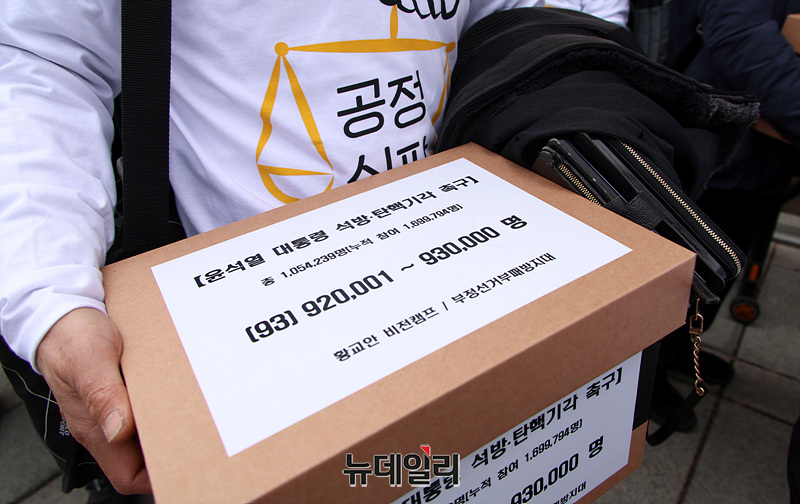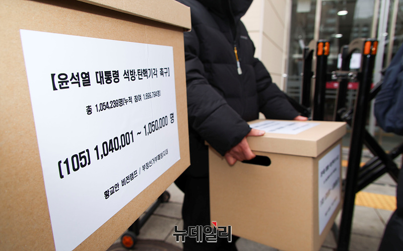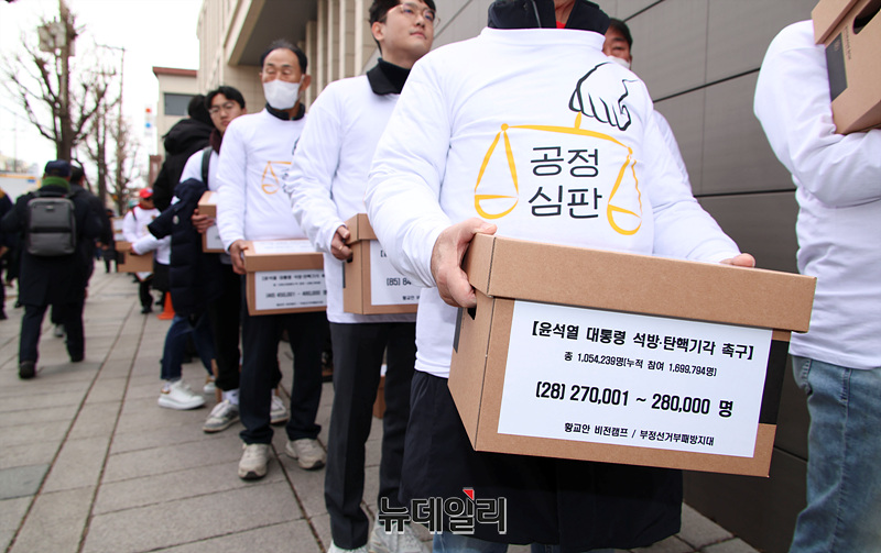 [포토] 헌재 향하는 '윤 대통령 석방·탄핵 기각 요구 청원 탄원서' 105만여 건
