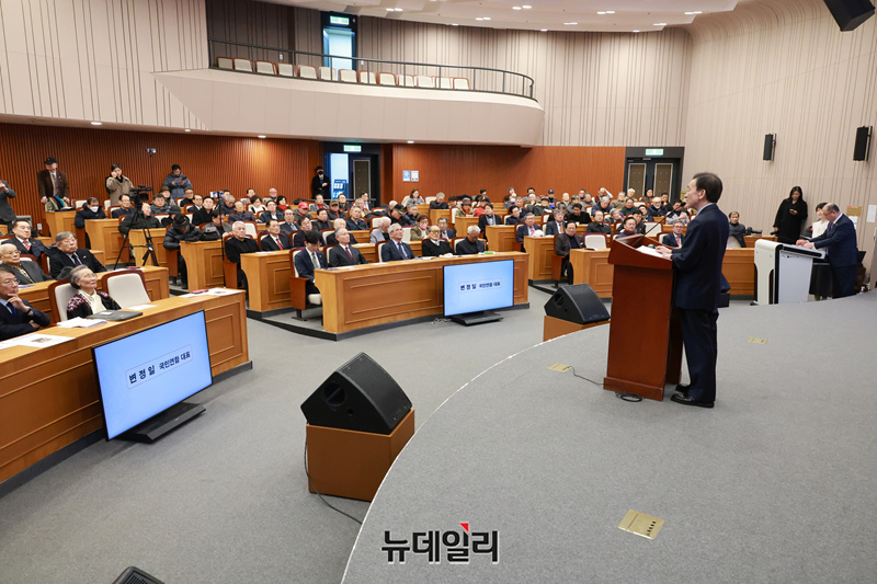 변정일 이승만바로알기국민연합 대표가 5일 오후 국회 박물관에서 열린 이승만바로알기국민연합 출범식 및 기념 강연에서 인사말을 하고 있다.이날 행사는 이승만동상광화문건립추진위원회와자유헌정포럼, 한반도미래재단, 한반도인권과통일을위한변호사 모임 등 20여 개 단체가 참여 했다.기념 강연회에서는 이영훈 이승만 학당 교장이 '제헌헌법 전문에 새겨진 대한민국 건국의 정통성', 류석춘 전 연세대 교수가 '이승만은 과연 친일인가?', 인보길 뉴데일리 미디어그룹 회장이 '이승만은 독재자인가?', 정안기 박사가 '이승만은 남북문단 책임자인가?' 등의 주제 발표를 이어갔다.