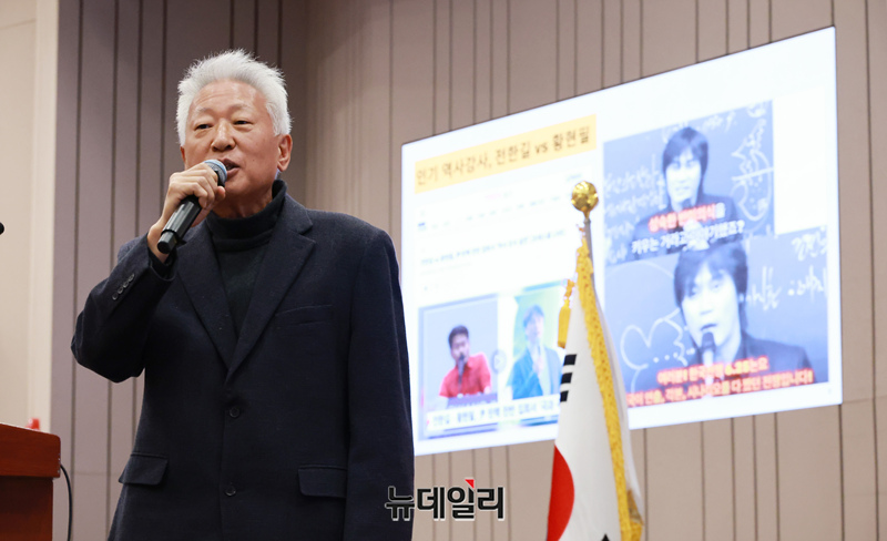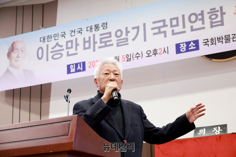류석춘 전 연세대 교수가 5일 오후 국회 박물관에서 열린 이승만바로알기국민연합 출범식 및 기념 강연에서 '이승만은 과연 친일인가?'을 주제로 강연을 하고 있다.