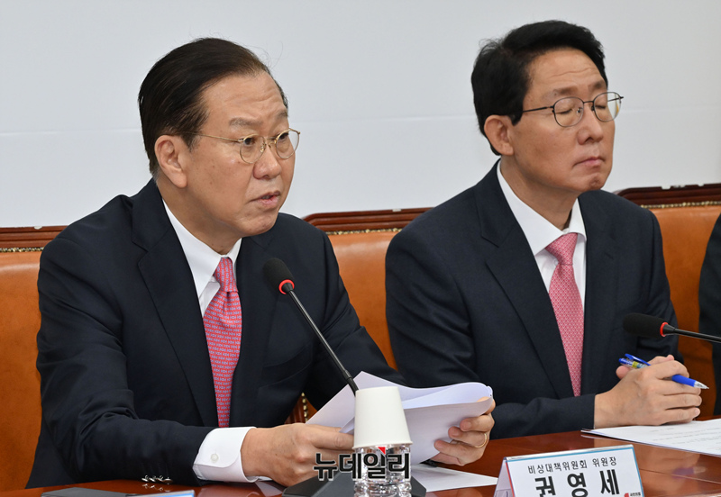 권영세 국민의힘 비상대책위원장이 6일 오전 국회에서 열린 비상대책위원회의에 참석해 모두 발언하고 있다.