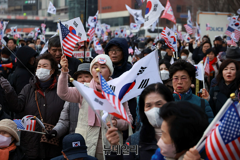 [포토] 다시 한남동 울려 퍼지는 '탄핵 무효'
