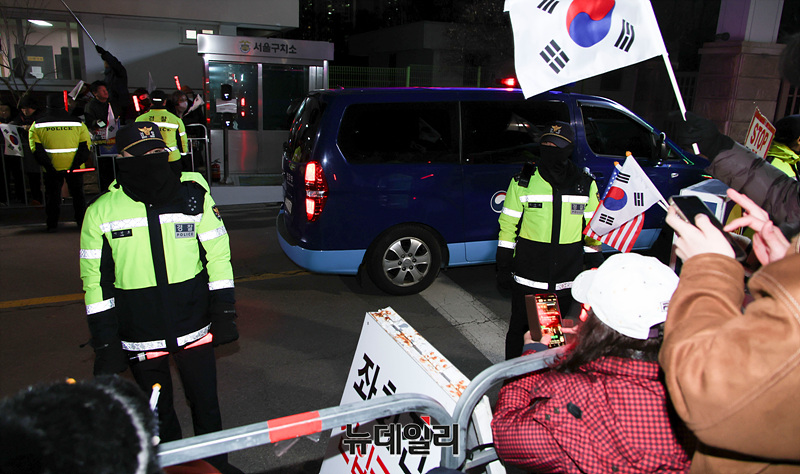 [포토] '대통령 나온다' 소식에 서울구치소 모인 시민들