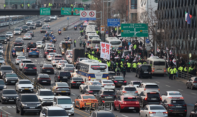윤석열 대통령이 불법구금 52일째인 8일 오후 서울구치소에서 나와 한남대교를 건너 대통령 관저로 복귀하고 있다. 대통령 석방 소식에 지난밤부터 지지자들이 관저로 대거 몰려 대통령을 맞이 했다.