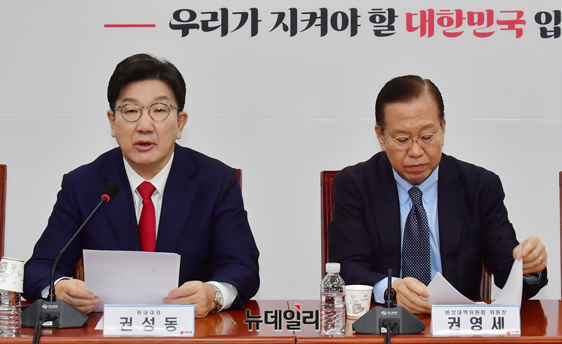 이날 권 원내대표는 야당이 윤석열 대통령 석방의 책임을 물어 심우정 검찰총장의 사퇴를 촉구하고 탄핵 소추 가능성까지 밝힌 데 대해 "검찰총장이 법을 지켰다고 탄핵하는 것"이라고 발언했다.
