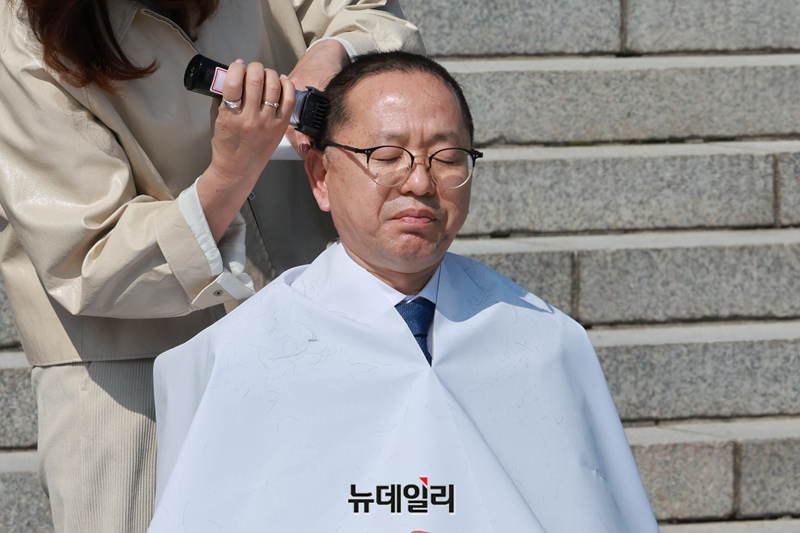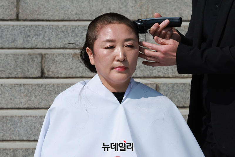 [포토] 전진숙·박홍배·김문수 '윤 대통령 조기 파면 결정 촉구 삭발식'