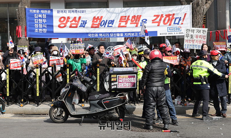 [포토] 헌법재판소 앞, 탄핵찬반 나눠 아수라장