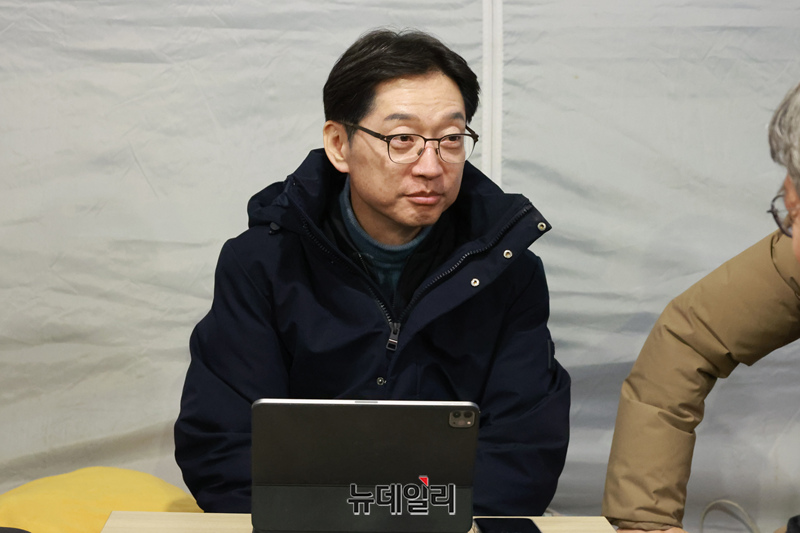 김경수 전 경남도지사가 11일 오후 서울 종로구 광화문 앞 농성장에서 윤석열 대통령 파면 촉구 단식 농성을 사흘째 벌이고 있다.