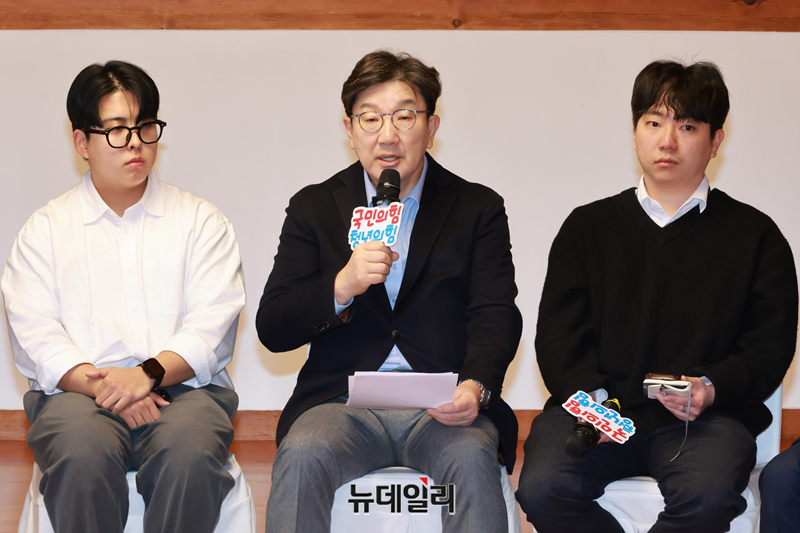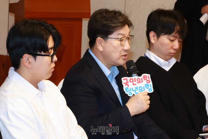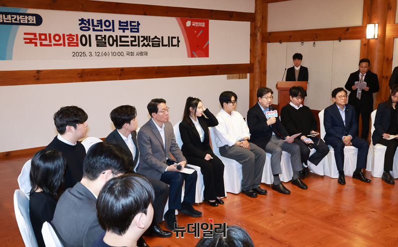 국민의힘 권성동 원내대표가 12일 국회 사랑재에서 열린 국민의힘 청년 정책 간담회 '청년의 부담, 국민의힘이 덜어드리겠습니다'에서 발언하고 있다.