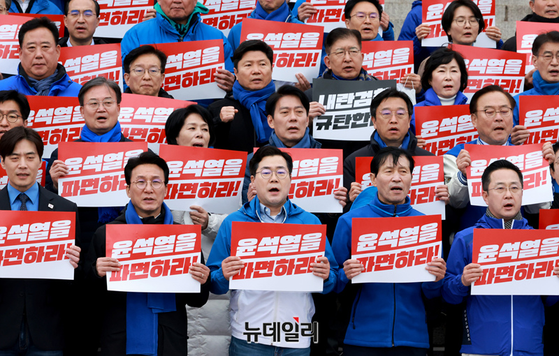 [포토] 윤석열 파면 촉구 국회의원 도보행진 출정식