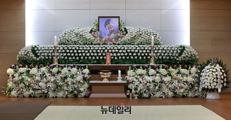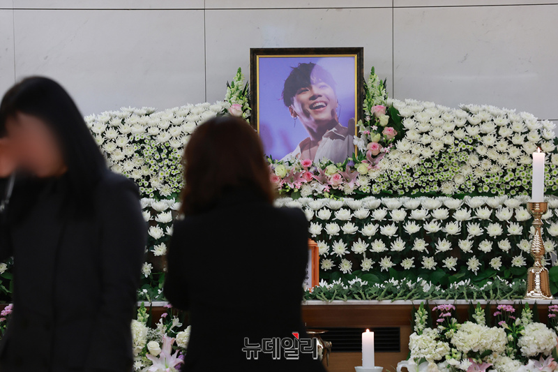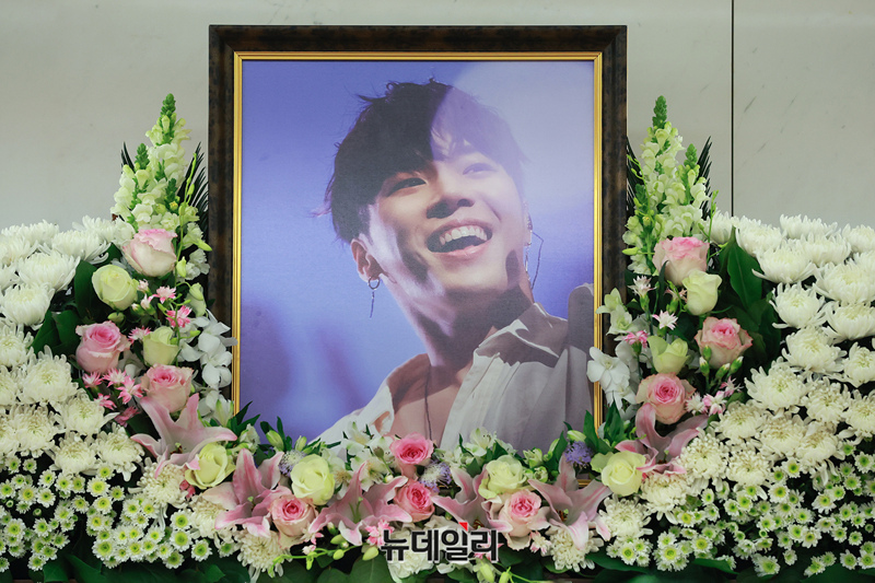 故 가수 휘성의 빈소가 14일 삼성서울병원 장례식장에 마련돼 있다. 휘성은 지난 10일 서울의 한 아파트에서 심정지 상태로 발견됐다. 발인은 16일, 장지는 광릉추모공원이다. (사진=공동취재단)