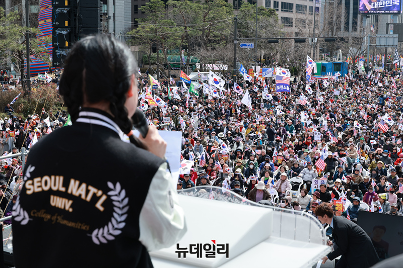 [포토] 광화문 광장서 대통령 탄핵 반대 외치는 대학생들