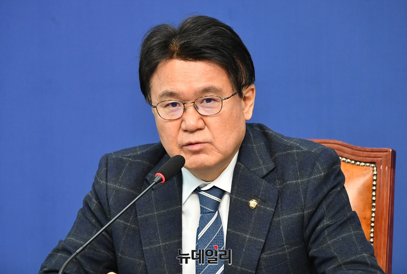 황운하 조국혁신당 원내대표가 19일 오전 국회에서 열린 '탄핵을 넘어 더 탄탄한 대한민국으로 위원회 회의'에서 발언하고 있다.