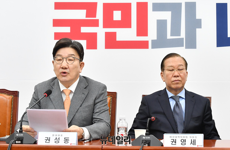 권성동 국민의힘 원내대표가 20일 오전 국회에서 열린 비상대책위원회의에서 모두발언을 하고 있다.