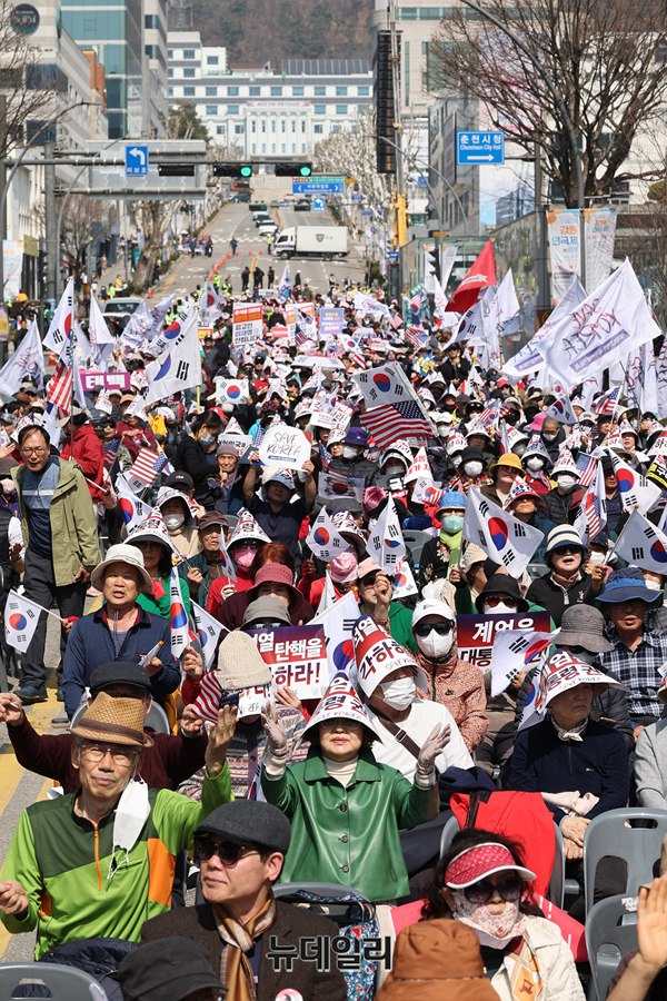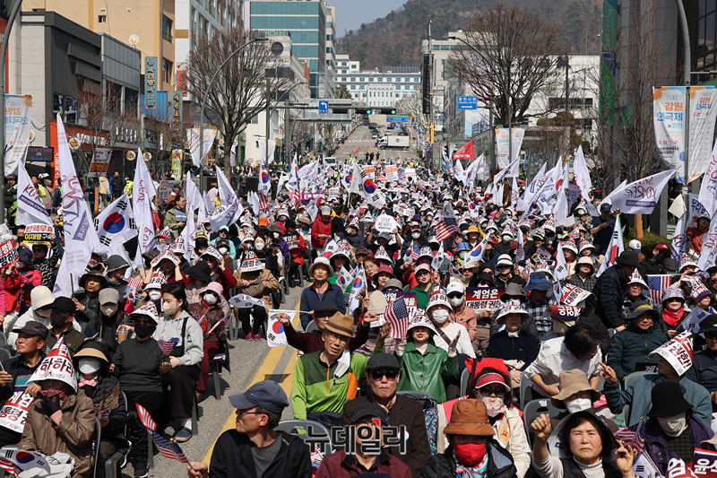 헌법재판소의 대통령 탄핵심판 선고가 늦어짐에 따라 이번 주말에도 광화문을 비롯한 전국 곳곳에서 탄핵반대 집회가 이어지고 있다. (강원 춘천=정상윤 기자)