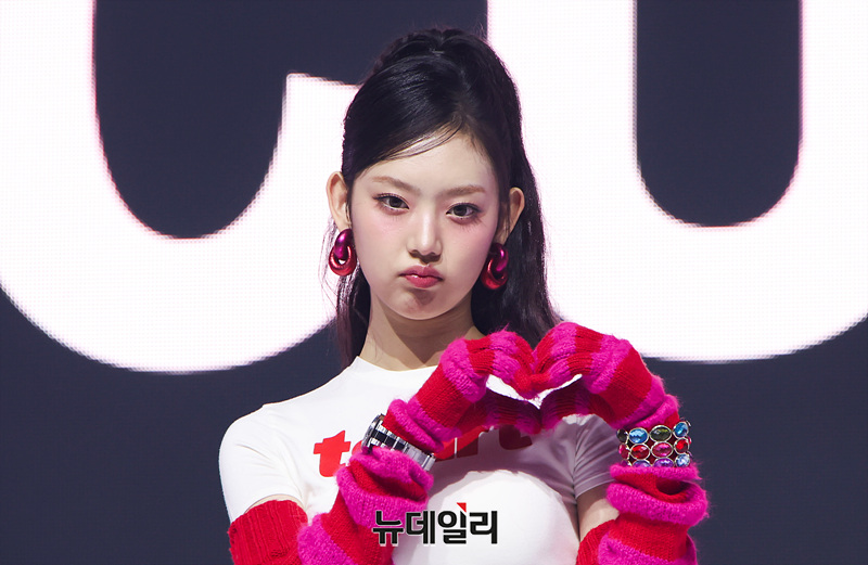 그룹 키키(KiiiKiii) 이솔이 24일 오후 서울 용산구 블루스퀘어에서 열린 데뷔 앨범 '언컷 젬(UNCUT GEM)' 발매 및 데뷔 기념 쇼케이스에서 포즈를 취하고 있다.