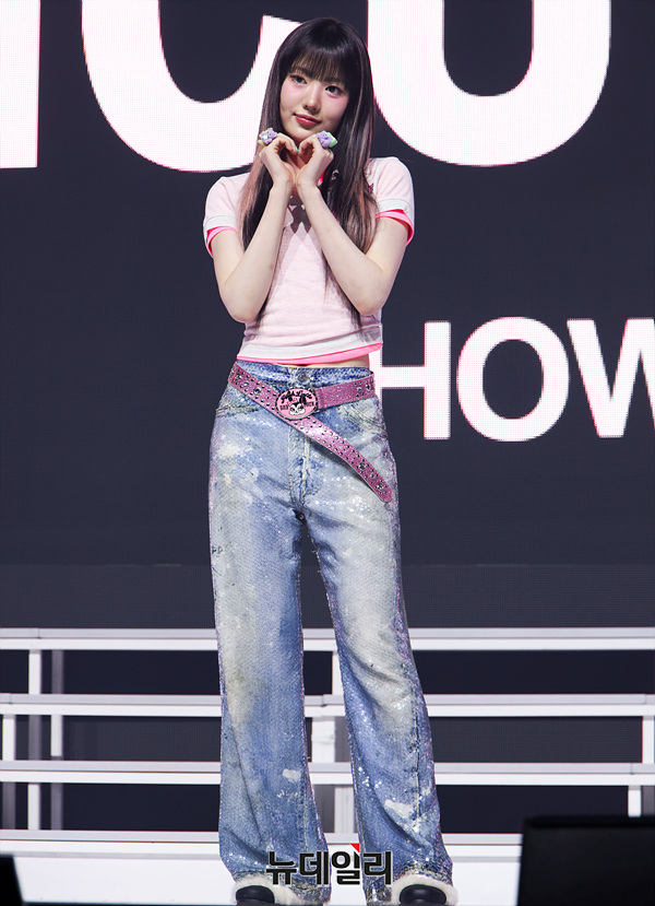 그룹 키키(KiiiKiii) 수이가 24일 오후 서울 용산구 블루스퀘어에서 열린 데뷔 앨범 '언컷 젬(UNCUT GEM)' 발매 및 데뷔 기념 쇼케이스에서 포즈를 취하고 있다.