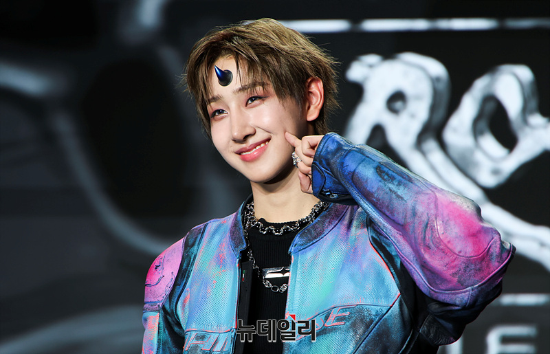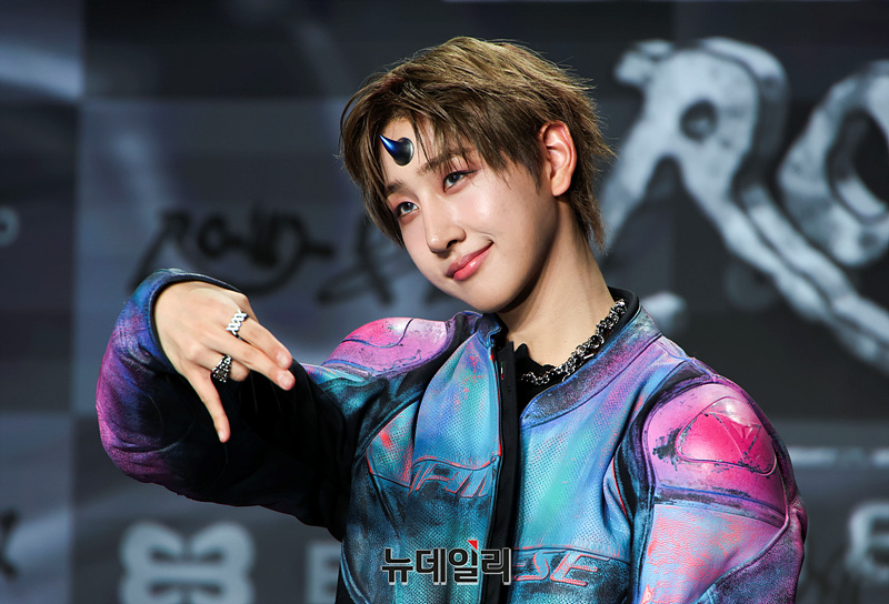 그룹 뉴비트(NEWBEAT) 최서현이 24일 오후 서울 강남구 일지아트홀에서 열린 정규 1집 '러 앤 래드(RAW AND RAD)' 발매 및 데뷔 기념 쇼케이스에서 포즈를 취하고 있다.