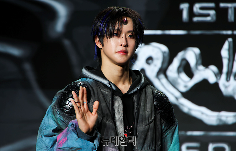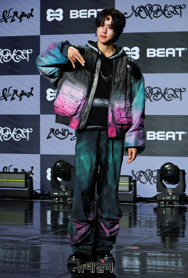 그룹 뉴비트(NEWBEAT) 박민석이 24일 오후 서울 강남구 일지아트홀에서 열린 정규 1집 '러 앤 래드(RAW AND RAD)' 발매 및 데뷔 기념 쇼케이스에서 포즈를 취하고 있다.