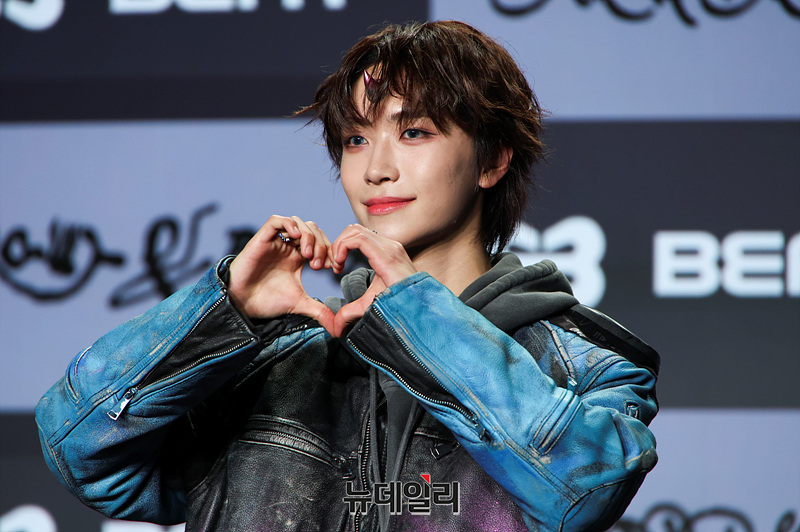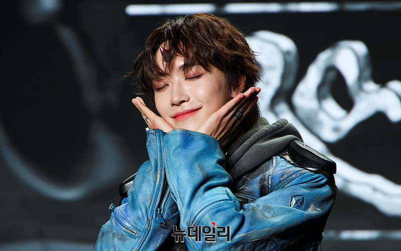 그룹 뉴비트(NEWBEAT) 조윤후가 24일 오후 서울 강남구 일지아트홀에서 열린 정규 1집 '러 앤 래드(RAW AND RAD)' 발매 및 데뷔 기념 쇼케이스에서 포즈를 취하고 있다.