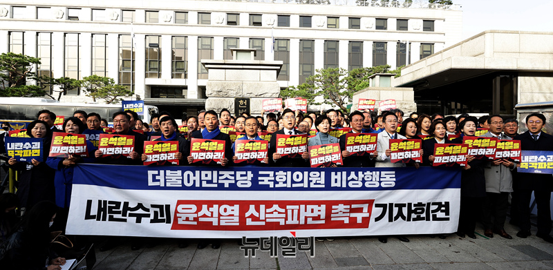 [포토] 윤석열 대통령 신속파면 촉구하는 민주당 의원들