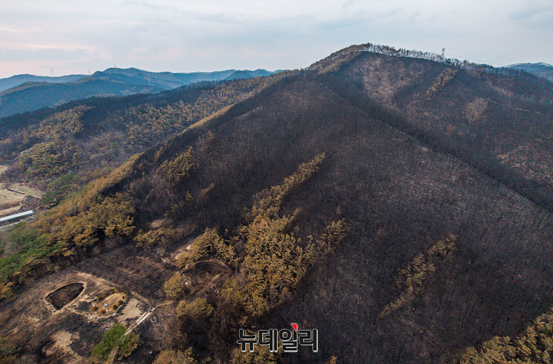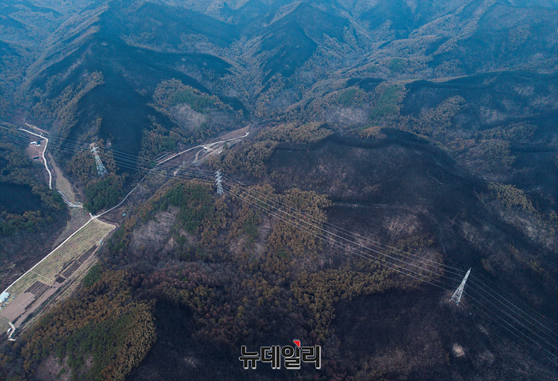 이번 산불은 경북 의성, 안동, 청송, 영양, 영덕 등 지역에서 총 24명의 인명 피해가 발생하고 주택과 문화재 등 2,412여 개의 시설이 소실됐다. 산림청은 경북 전역 산불 영향구역을 약 45,170헥타르로 추산했다. (경북 안동=서성진 기자)