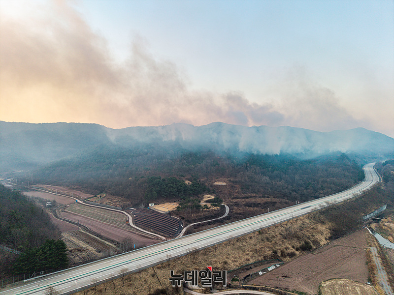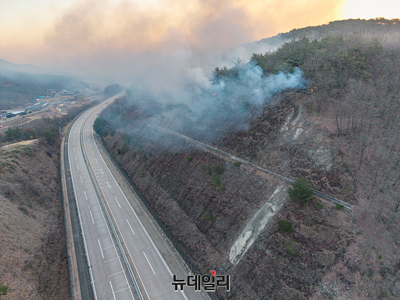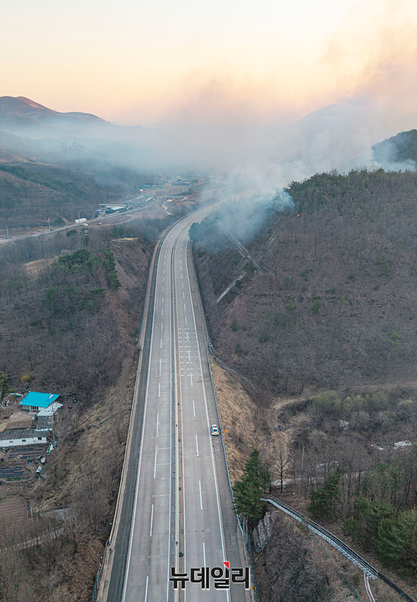 [포토] 안동 산불 재발화, 중앙고속도로 남안동IC-서안동IC 양방향 통제