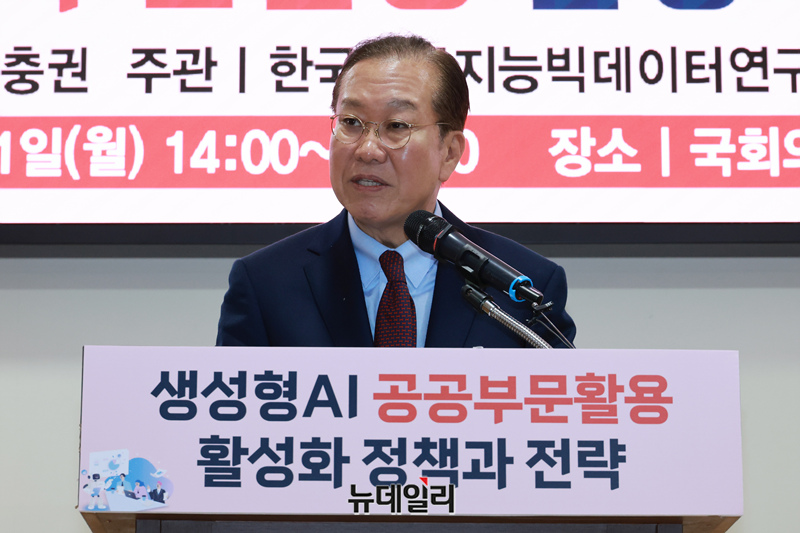 권영세 국민의힘 비상대책위원장이 31일 오후 국회 의원회관에서 열린 '생성형AI 공공부문활용 활성화 정책과 전략' 토론회에서 축사를 하고 있다.