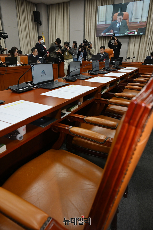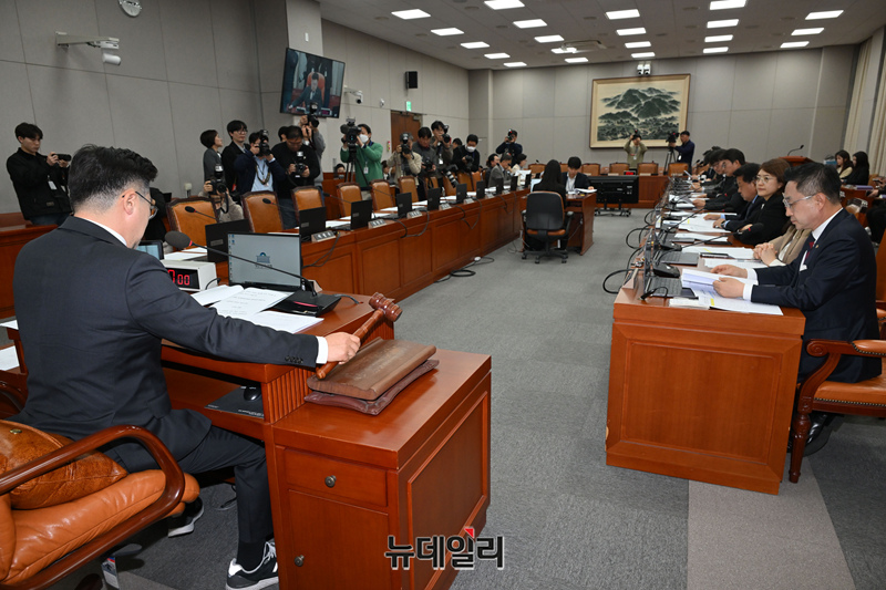 국민의힘 의원들이 불참한 가운데 31일 국회 운영위원회 전체회의에서 마은혁 헌법재판관 조속임명 결의안이 통과되고 있다.