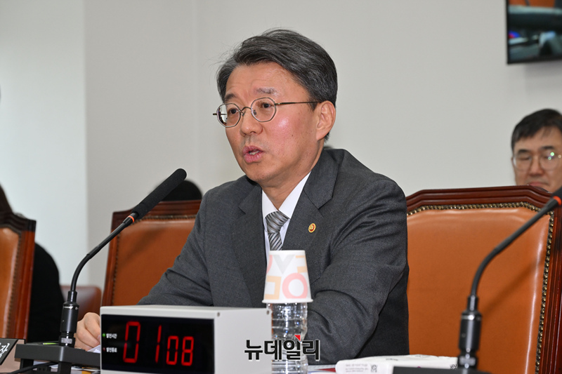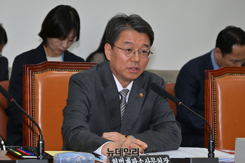김정원 헌법재판소 사무처장이 31일 오후 국회 법제사법위원회 전체회의에서 의원질의에 답변하고 있다.
