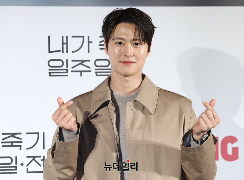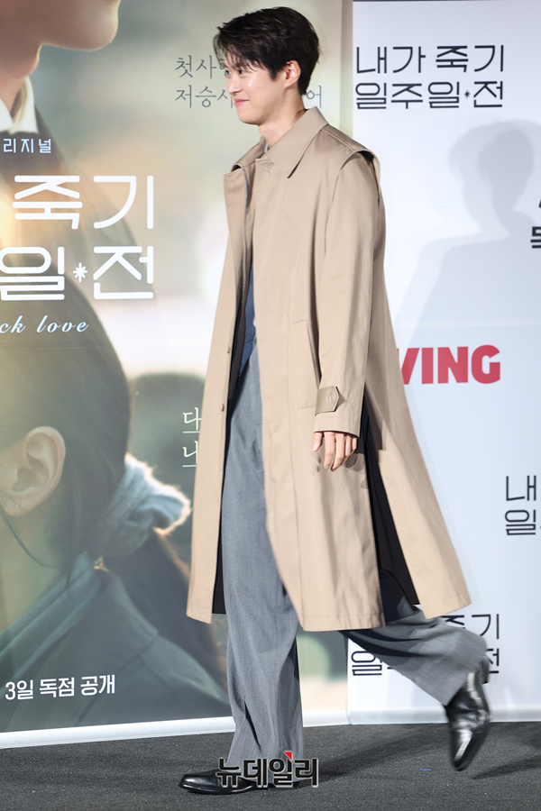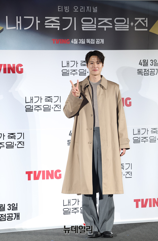 배우 공명이 1일 오전 서울 CGV용산아이파크몰에서 열린 티빙 오리지널 '내가 죽기 일주일 전' 제작보고회에서 포즈를 취하고 있다.
