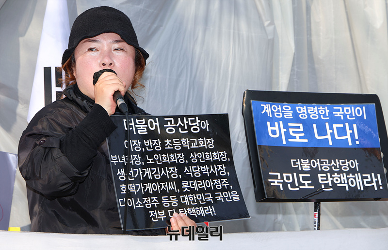 윤석열 대통령 탄핵심판 선고를 앞둔 1일 오전 서울 종로구 헌법재판소 앞에서 윤 대통령 탄핵을 반대하는 무제한 기자회견이 진행되고 있다.
