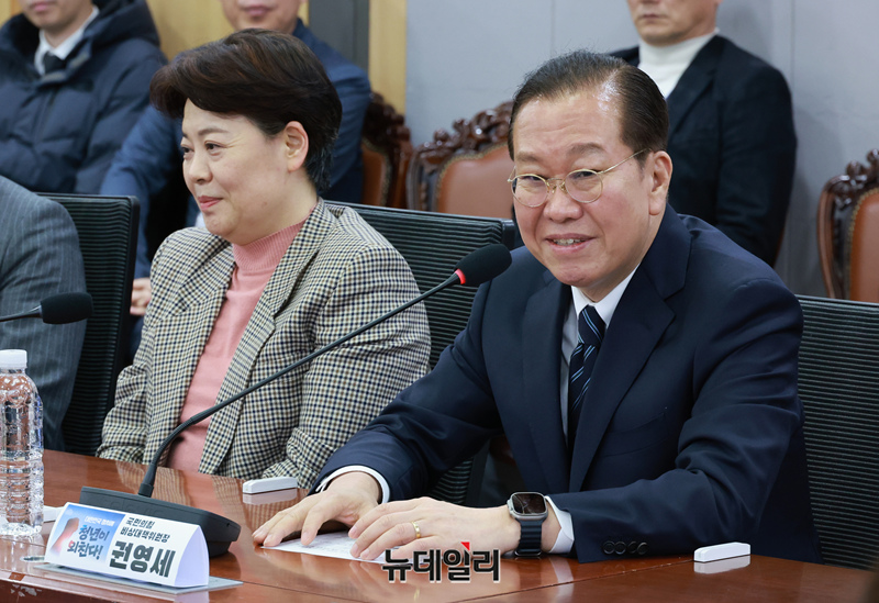 권영세 국민의힘 비상대책위원장이 1일 오후 국회 의원회관에서 여의도연구원 주최로 열린 '대한민국 정치에 청년이 외친다!' 토론회에서 축사를 하고 있다.