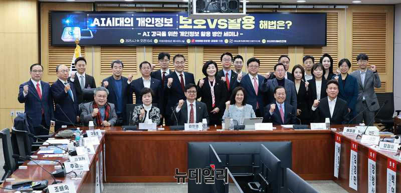 권영세 국민의힘 비상대책위원장이 2일 오전 국회 의원회관에서 열린 AI강국을 위한 개인정보 활용 방안 세미나에서 참석자들과 기념촬영을 하고 있다.