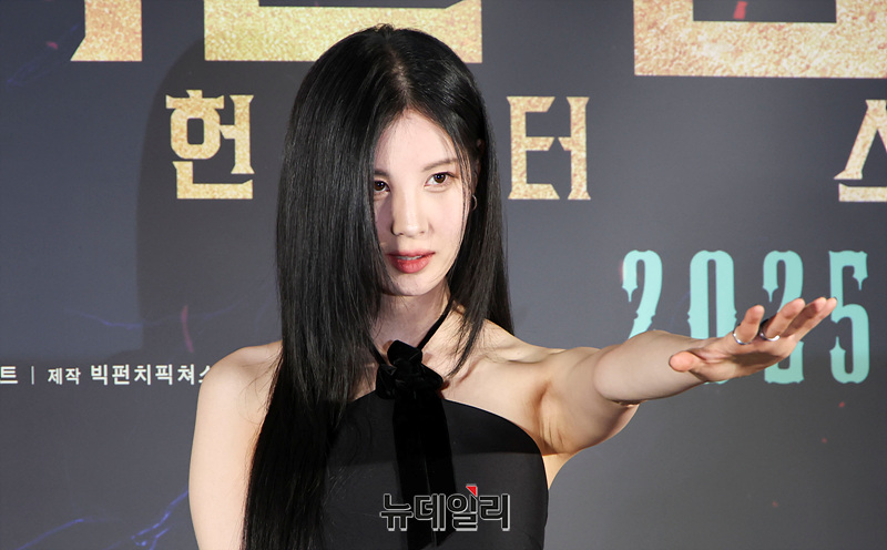 배우 서현이 2일 오전 서울 광진구 롯데시네마 건대입구점에서 열린 영화 '거룩한 밤: 데몬 헌터스' 제작보고회에서 포즈를 취하고 있다.