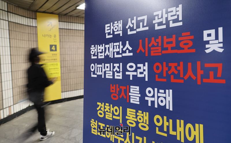 [포토] 탄핵심판 선고 앞두고 출입폐쇄된 안국역 3번 출구