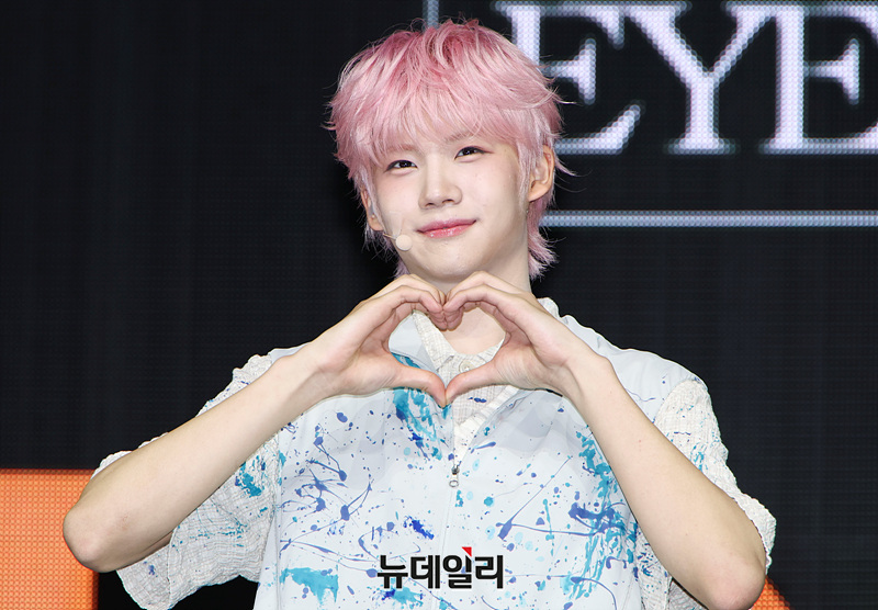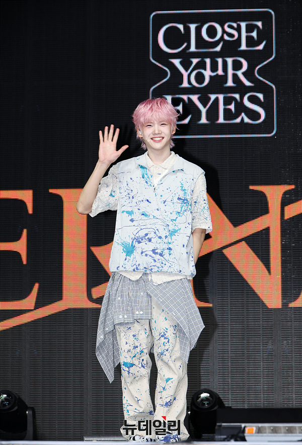 7인조 다국적 보이그룹 클로즈 유어 아이즈(CLOSE YOUR EYES) 켄신이 2일 오후 서울 광진구 예스24 라이브홀에서 열린 첫 번째 미니 앨범 '이터널티(ETERNALT)' 발매 및 데뷔 쇼케이스에서 포즈를 취하고 있다.