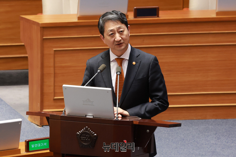 안덕근 산업통상자원부 장관이 3일 오후 국회에서 열린 본회의 경북·경남·울산지역산불사태수습과피해대책마련및헌법질서수호를위한긴급현안질문에서 의원질의에 답하고 있다.