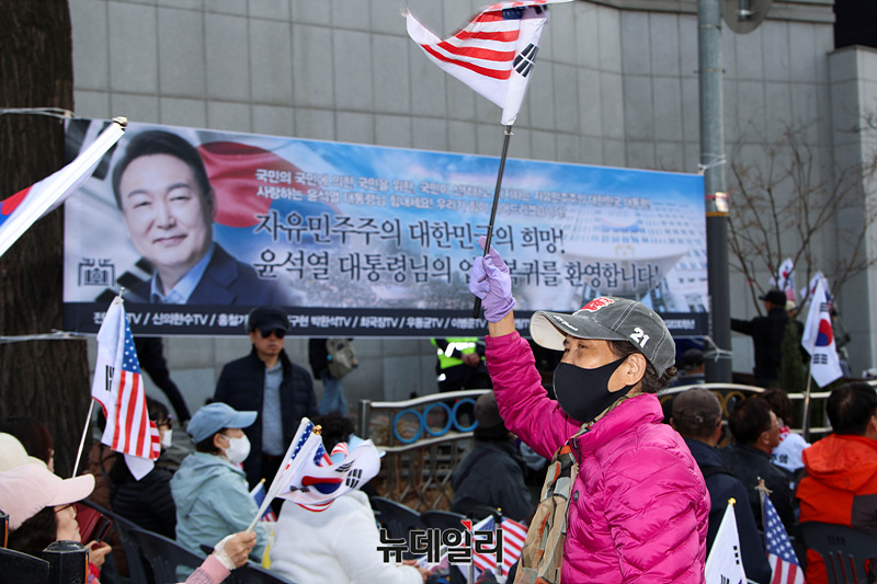 [포토] '尹 탄핵심판' 앞두고 탄핵반대 외치는 시민들