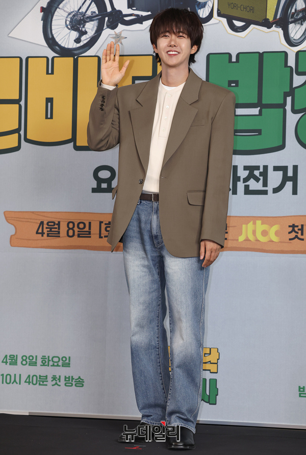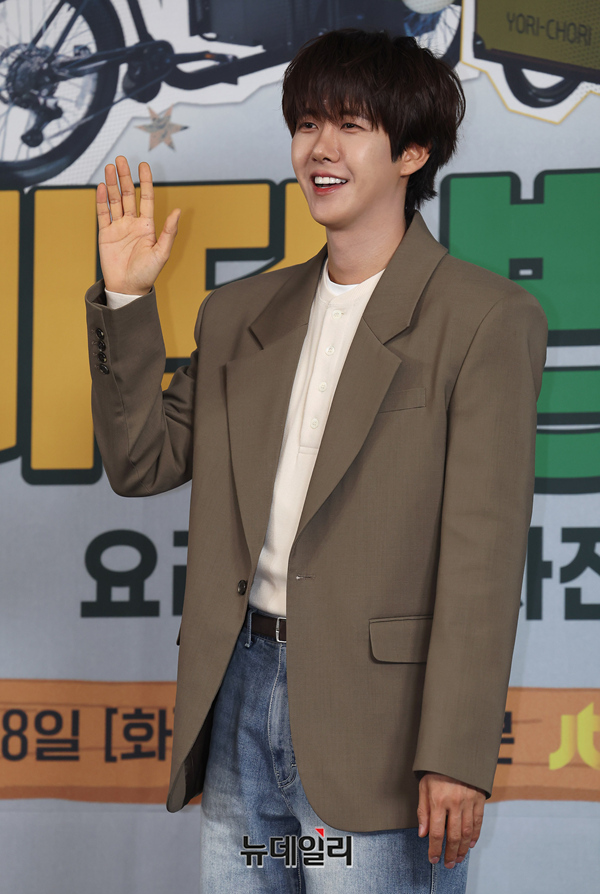배우 황광희가 7일 오전 서울 마포구 스탠포드호텔에서 열린 JTBC 새예능 '길바닥 밥장사:요리조리 자전거(연출 김소영)' 제작보고회에서 포즈를 취하고 있다.