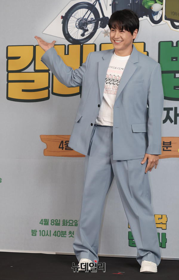 배우 류수영이 7일 오전 서울 마포구 스탠포드호텔에서 열린 JTBC 새예능 '길바닥 밥장사:요리조리 자전거(연출 김소영)' 제작보고회에서 포즈를 취하고 있다.