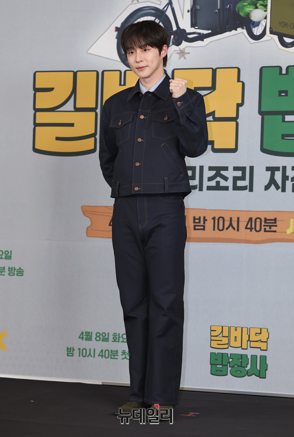 배우 배인혁이 7일 오전 서울 마포구 스탠포드호텔에서 열린 JTBC 새예능 '길바닥 밥장사 요리조리 자전거(연출 김소영)' 제작보고회에서 포즈를 취하고 있다.