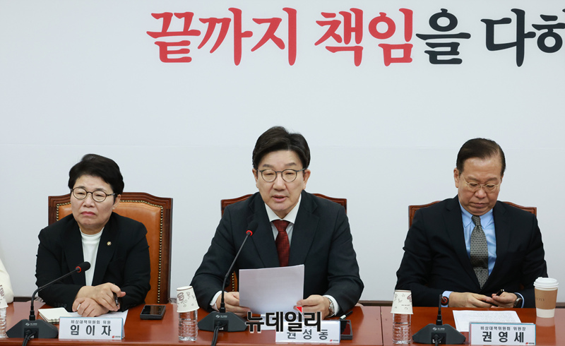 권성동 국민의힘 원내대표가 7일 오전 국회에서 열린 비상대책위원회의에서 모두발언을 하고 있다.