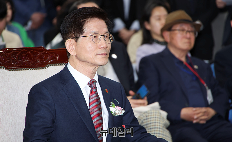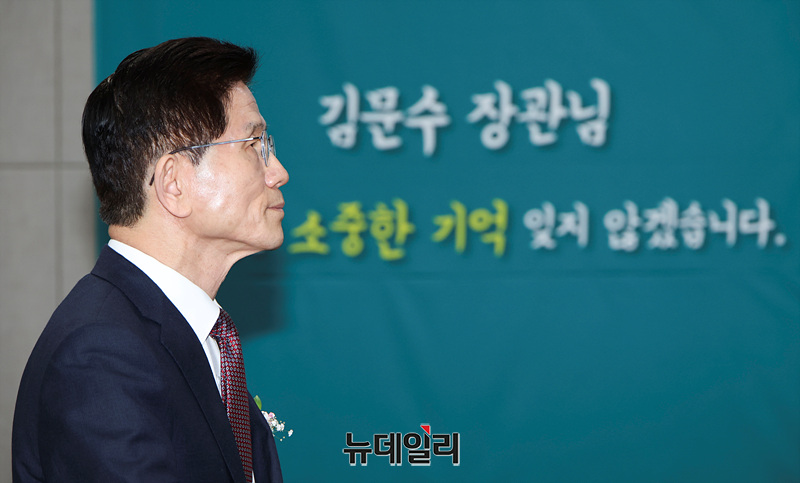 [포토] 이임식서 영상 시청하는 김문수 장관