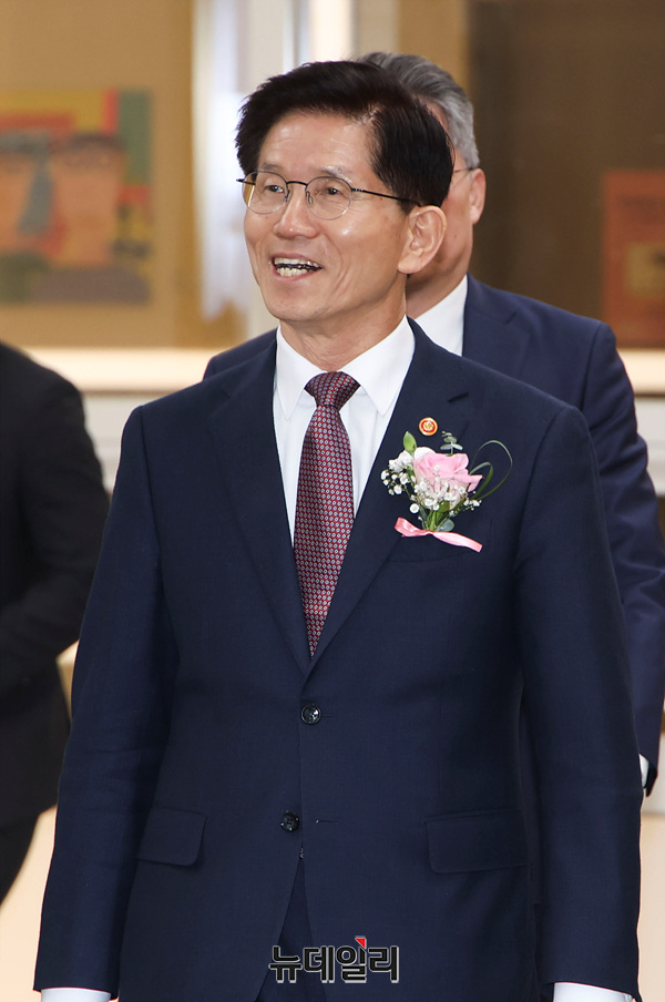 김문수 고용노동부 장관이 8일 오후 정부세종청사에서 열린 이임식에 참석하고 있다. (세종=서성진 기자)