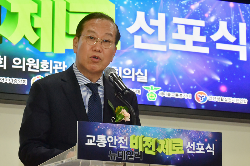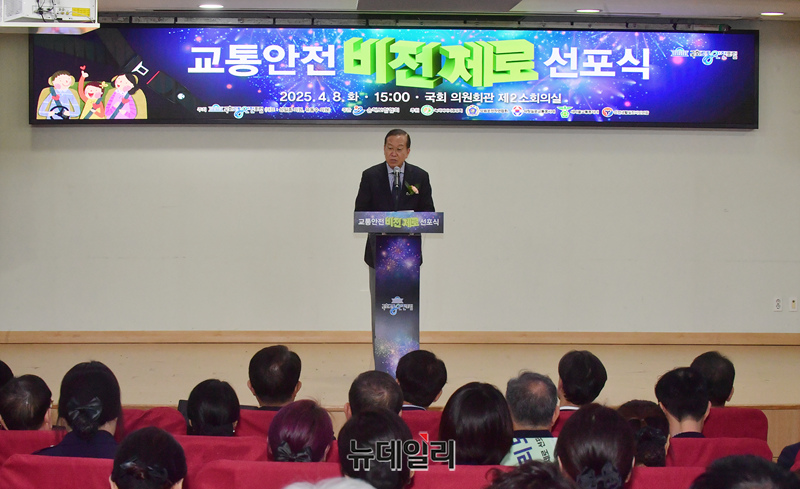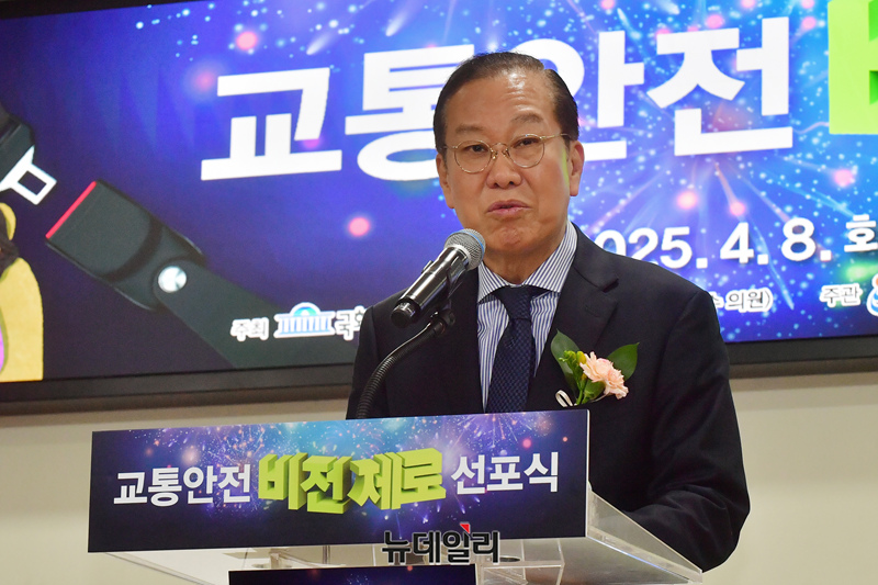 권영세 국민의힘 비상대책위원장이 8일 국회 의원회관에서 열린 교통안전 비전제로 선포식에서 축사를 하고 있다.