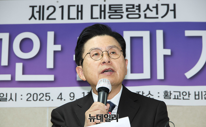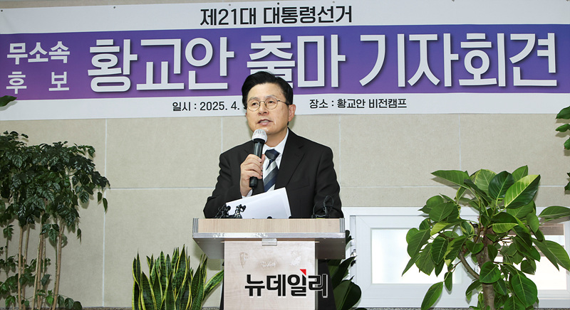 황교안 전 국무총리가 9일 오전 서울 용산구 황교안 비전캠프에서 '국민의힘 탈당·제21대 대통령 선거 출마' 기자회견을 하고 있다.