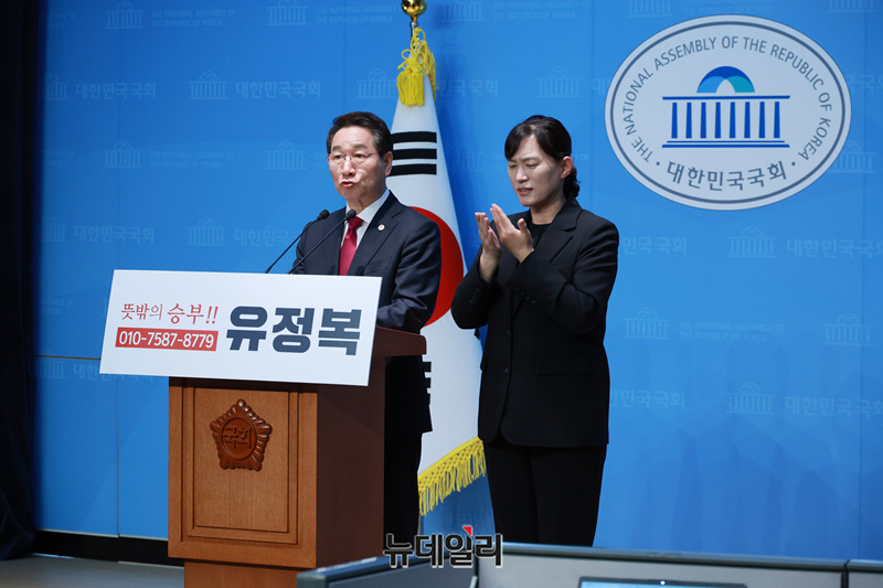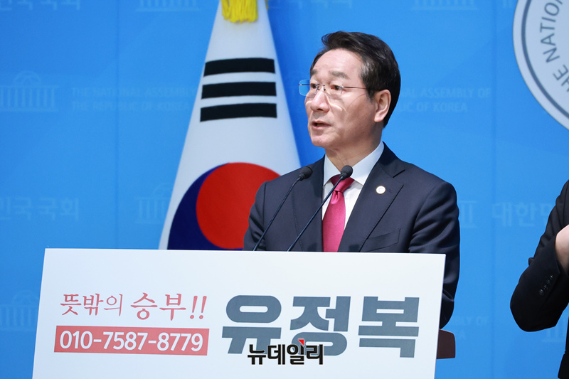 유정복 인천시장이 9일 오전 국회 소통관에서 기자회견을 열고 제21대 대통령 선거 출마 선언을 하고 있다.